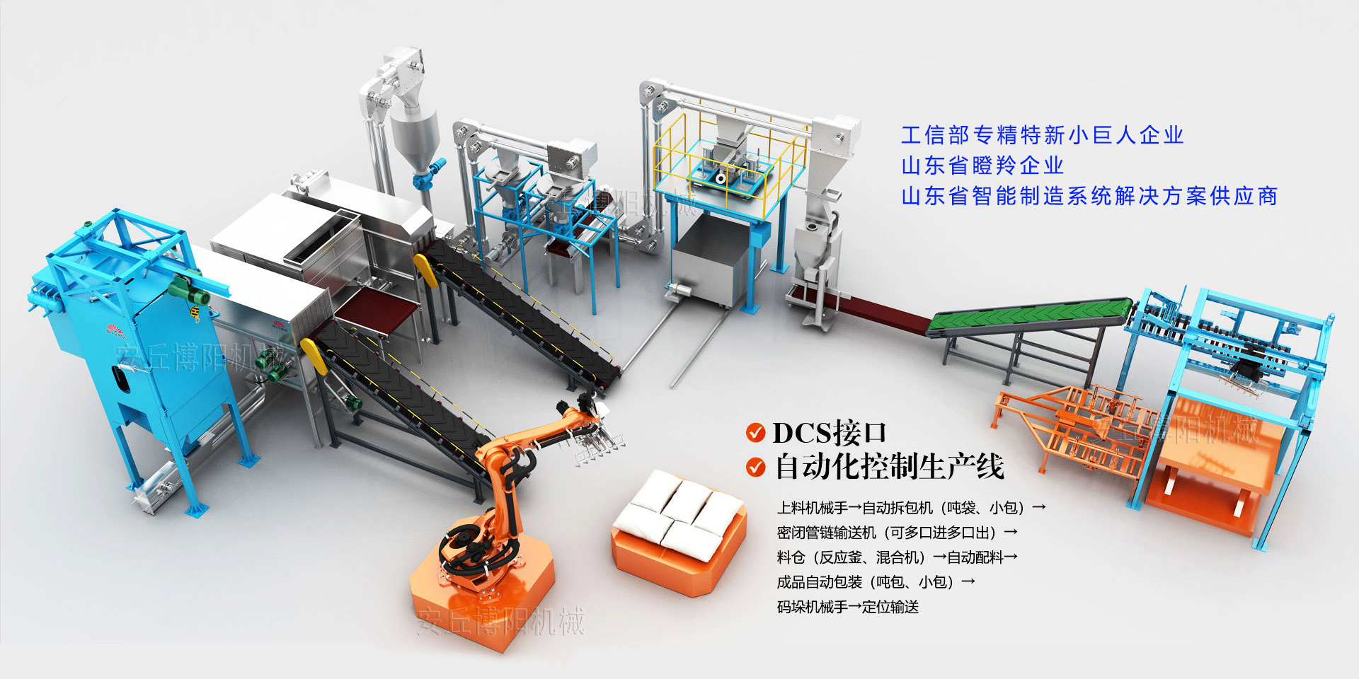 安丘博陽機(jī)械制造有限公司成立于2008年,是一家專注于自動(dòng)化包裝、碼垛、拆垛拆包投料及智能倉儲(chǔ)物流裝備定制的研發(fā)型“生產(chǎn)+服務(wù)”企業(yè),業(yè)務(wù)包括包裝碼垛生產(chǎn)線、拆垛拆包投料生產(chǎn)線、AGV搬運(yùn)立體庫倉儲(chǔ)生產(chǎn)線、智能裝卸車生產(chǎn)線制造和提供制造業(yè)生產(chǎn)線工業(yè)4.0升級(jí)改造服務(wù)等5大板塊,涵蓋化工、醫(yī)藥、農(nóng)藥、化肥、鹽堿、新能源、新材料、有色金屬、橡膠、塑料、食品、礦山、建材、危廢、鋁電二十多個(gè)行業(yè)。是中鋁集團(tuán)、中國(guó)水電集團(tuán)、北方稀土集團(tuán)、華友控股集團(tuán)、兗礦集團(tuán)等國(guó)內(nèi)頭部企業(yè)優(yōu)質(zhì)合作伙伴。